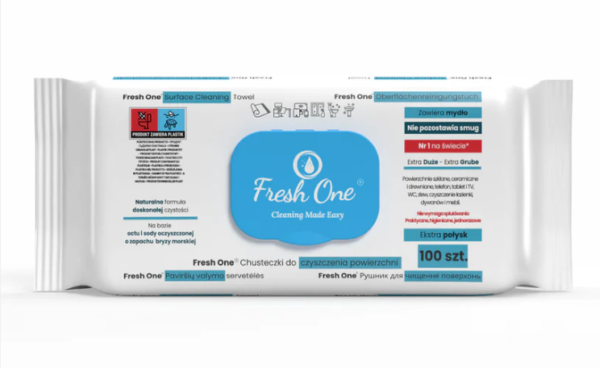 Fresh One® to wysokiej jakości nawilżane chusteczki czyszczące, stworzone na bazie naturalnych składników: octu, sody oczyszczonej, mydła i olejków ezoterycznych. Ich formuła skutecznie usuwa tłuszcz, kurz i zabrudzenia z różnych powierzchni, nie pozostawiając smug i nie wymagając spłukiwania.